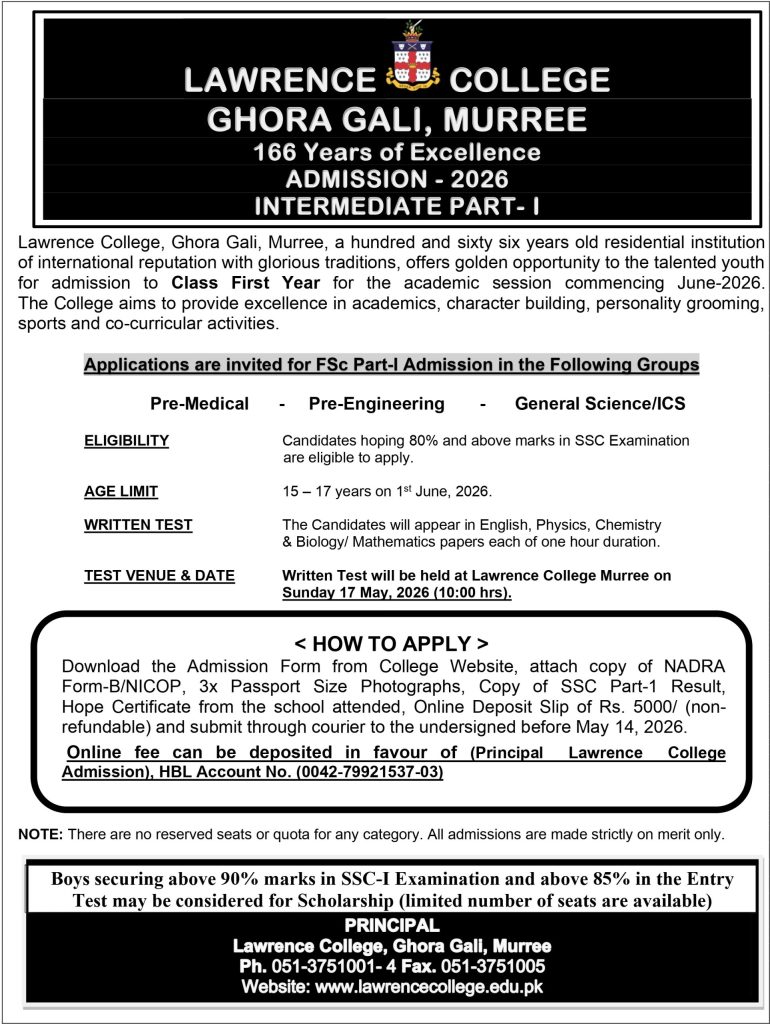 Lawrence College Ghora Gali has a tradition of offering a wide range of generous scholarships and other awards. Please ask for details.